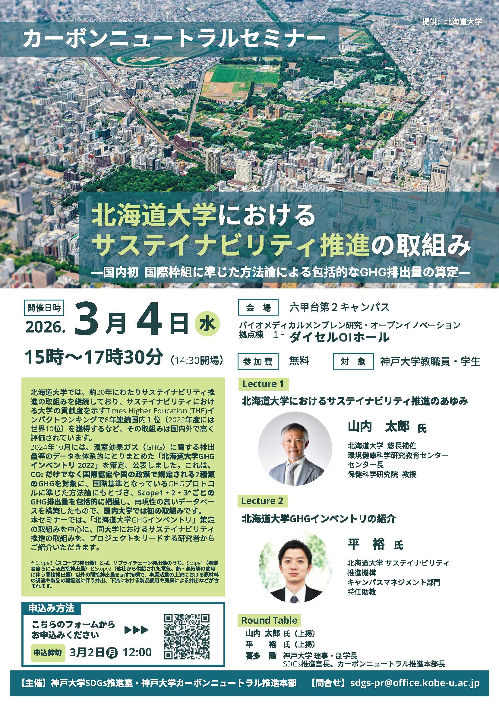 【3月4日開催】カーボンニュートラルセミナー「北海道大学におけるサステイナビリティ推進の取組み」を開催