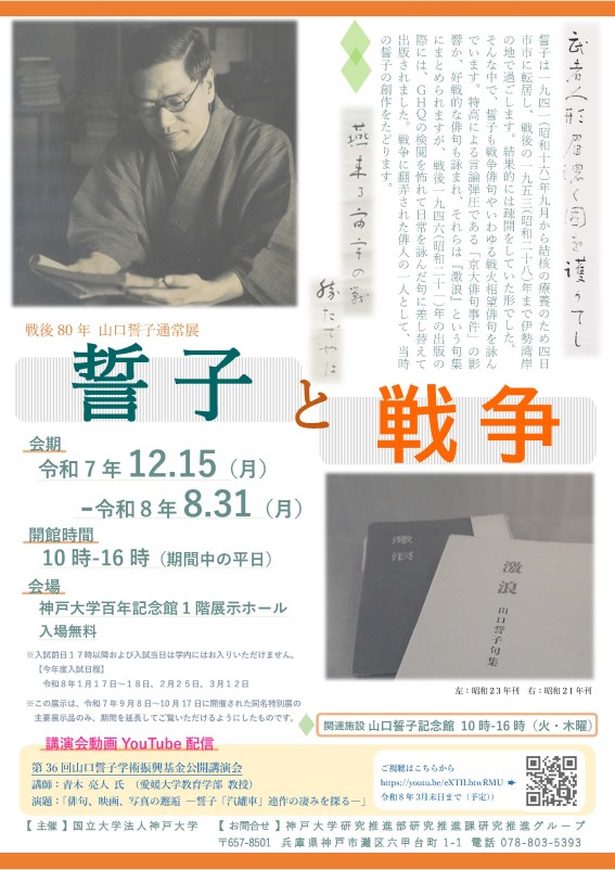 神戸大学では、山口誓子学術振興基金の活動として、公開講演会を実施しています。 一部講演会の様子は、大学公式Youtubeチャンネルで公開しています。