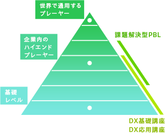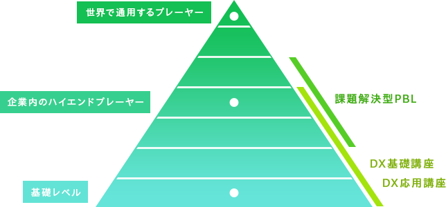 本センターでは、複数のプログラムを受講者のレベルに応じて使い分けながら、初級者から専門家への成長をサポートします。体系的な学習を通じて、ビジネスをリードするハイエンドプレーヤーの育成を目指します。 -