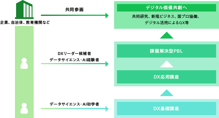 主に企業や自治体、教育機関などの就業者のうち、初等的なデータサイエンスおよびPythonプログラミングを学修済みの方を対象としています。特に、より応用的・専門的な内容を学ぶことで、具体的な課題を自らの手で解決するデータサイエンスプロフェッショナルを目指す人に最適なプログラムです。