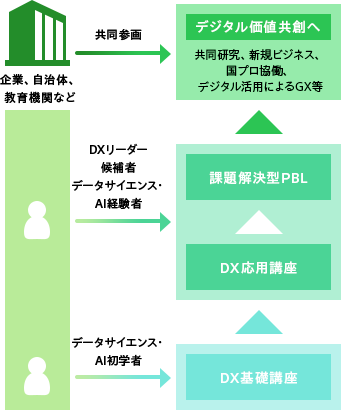 このプログラムは異分野共創を掲げる神戸大学において、2022年度より「DXリカレント事業」を実施し、様々な領域の社会人に対してデータサイエンスやAI、DXに関するリカレント教育を提供してきた数理・データサイエンスセンターだからこそできる取り組みです。