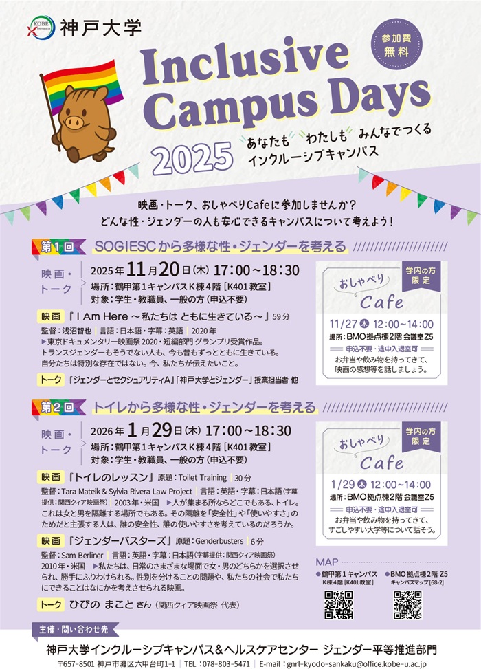 ※この企画は、「神戸大学ダイバーシティ推進宣言」および「神戸大学における多様な性・ジェンダーに関する基本方針とガイドライン」の趣旨を踏まえ、実施するものです。